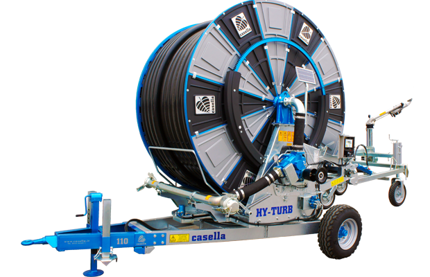 The Hy-Turb M is a turbine drive hard hose irrigator manufactured by Casella in Italy, engineered to deliver reliable water distribution across medium to large-scale agricultural operations. This hose reel system utilizes water pressure to power a turbine-driven rewinding mechanism, offering hose capacity options from 40 mm diameter with 130 m length up to 50 mm diameter with 170 m length. Unlike engine-powered irrigation systems that require fuel or electric power sources, the Hy-Turb M harnesses the energy already present in the irrigation water flow to operate its rewinding function, making it an exceptionally efficient choice for farms with adequate water pressure infrastructure.