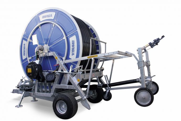 The G6 is the top-of-the-line model, with a hose capacity of up to 680 meters and a 360° rotating turret. It offers superior performance, ease of use, and high durability, designed for very large surfaces and demanding working conditions, ensuring uniform coverage and excellent maneuverability.
