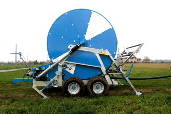 • for laying down the hose on the tractor wheel track with automatic gun-cart stabilizer leg