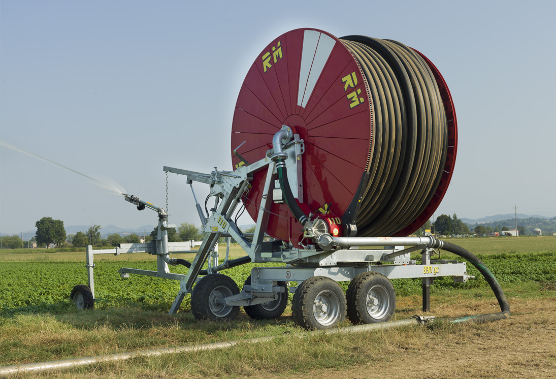 All RM hose-reel irrigation machines feature the medium density polyethylene hose (PEMD) with differentiated thickness starting from ø 90 included; the highest thickness near the reel allows for a better accuracy on rewind and a less ovalisation due to hose bending.